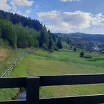 Лісовий Котедж在Synevyrsʼka Polyana提供理想的下榻之地。 客人会在露台休息。